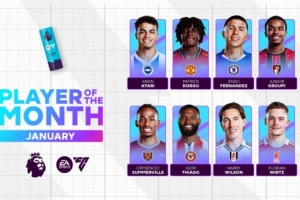 体育资讯2月5日讯 英超官方公布了1月份最佳球员候选,具体如下: