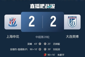 • 错失追分良机!申花2-2大连距榜首2分吴曦破门路易斯点射绝平