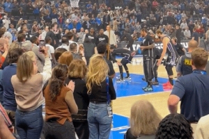 赛前球员入场环节,当威少被介绍时,全场爆发了欢呼声和掌声,许多球迷为曾经的俄城之子起立叫好。