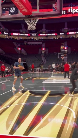 杨瀚森与偶像同框!开拓者记者Casey晒赛前热身视频:老将/新秀