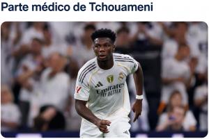 官方:皇马中场琼阿梅尼左腿肌肉受伤,据悉缺阵3周