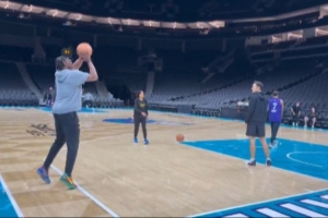 两位伤员!文森特和湖人新秀阿杜·蒂耶罗一起练三分呢