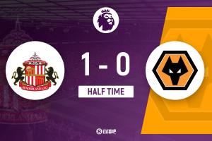 体育资讯10月18日讯 北京时间10月18日22点,英超第8轮,桑德兰在主场光明球场迎战狼队。上半场,两队机会都不多,穆基勒破门。上半场桑德兰1-0领先狼队。