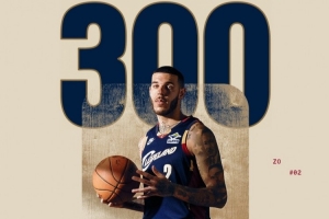 恭喜!骑士官方晒照:朗佐·鲍尔达成生涯第300场里程碑