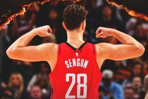 赛后,火箭发布赢球海报,申京秀肌肉瞬间成为封面。