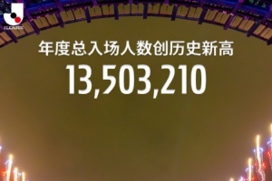 今年J联赛官方赛事年度观众总数13503210人次,创历史新高